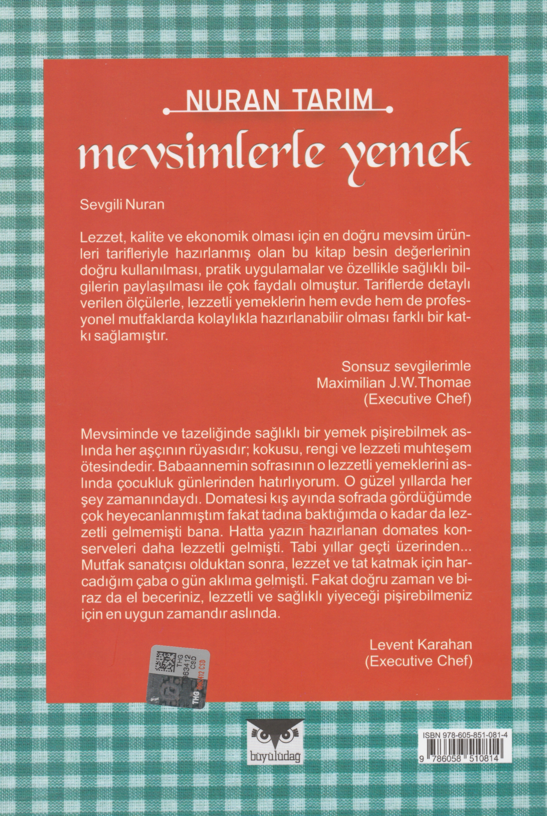 Lezzet, kalite ve ekonomik olması içi en doğru mevsim ürünleri tarifleriyle hazırlanmış olan bu kitap besin değerlerinin doğru kullanılması, pratik uygulamalar ve özellikle sağlıklı bilgilerin paylaşılması ile çok faydalı olmuştur. Tariflerde detaylı verilen ölçülerle, lezzetli yemeklerin hem evde hem de profesyonel mutfaklarda kolaylıkla hazırlanabilir olması farklı bir katkı sağlamıştır.