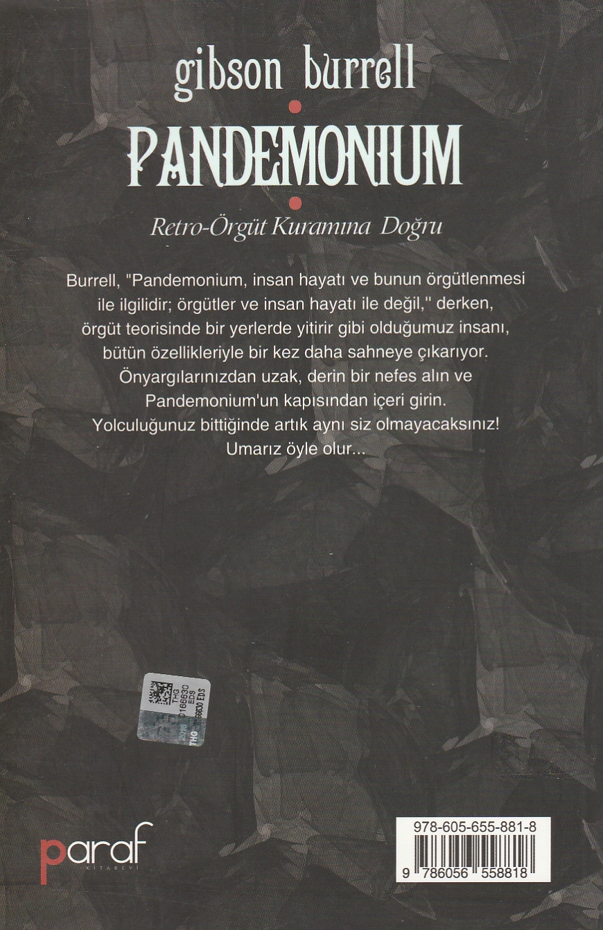"Burrell, 'Pandemonium, insan hayatı ve bunun örgütlenmesi ile ilgilidir; Örgütler ve insan hayatı ile değil''' derken, örgüt teorisinde bir yerlerde yitirir gibi olduğumuz insanı, bütün özellikleriyle bir kez daha sahneye çıkarıyor.
