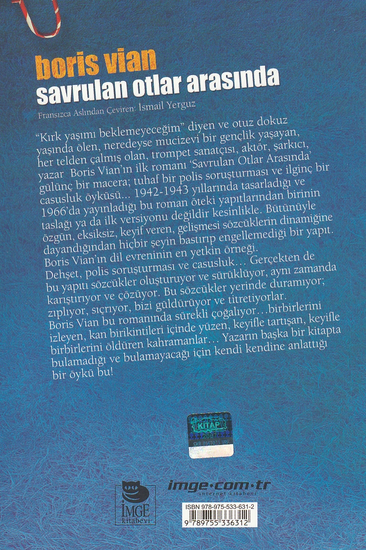 “Kırk yaşımı beklemeyeceğim” diyen ve otuz dokuz yaşında ölen, neredeyse mucizevi bir gençlik yaşayan, her telden çalmış olan, trompet sanatçısı, aktör, şarkıcı, yazar Boris Vian’ın ilk romanı ‘Savrulan Otlar Arasında’ gülünç bir macera; tuhaf bir polis soruşturması ve ilginç bir casusluk öyküsü... 1942-1943 yıllarında tasarladığı ve 1966’da yayınladığı bu roman öteki yapıtlarından birinin taslağı ya da ilk versiyonu değildir kesinlikle. Bütünüyle özgün, eksiksiz, keyif veren, gelişmesi sözcüklerin dinamiğine dayandığından hiçbir şeyin bastırıp engellemediği bir yapıt. Boris Vian’ın dil evreninin en yetkin örneği. Dehşet, polis soruşturması ve casusluk… Gerçekten de bu yapıtı sözcükler oluşturuyor ve sürüklüyor, aynı zamanda karıştırıyor ve çözüyor. Bu sözcükler yerinde duramıyor; zıplıyor, sıçrıyor, bizi güldürüyor ve titretiyorlar. Boris Vian bu romanında sürekli çoğalıyor…birbirlerini izleyen, kan birikintileri içinde yüzen, keyifle tartışan, keyifle birbirlerini öldüren kahramanlar… Yazarın başka bir kitapta bulamadığı ve bulamayacağı için kendi kendine anlattığı bir öykü bu!