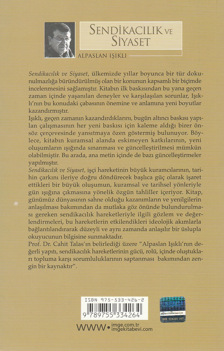 Alpaslan Işıklı'nın Sendikacılık ve Siyaset başlığını taşıyan kitabı, ülkemizde uzun yıllar boyunca bir tür dokunulmazlığı olan bir konunun derinlemesine ve kapsamlı bir biçimde incelenmesini sağlamıştır. Aradan geçen zaman içinde yaşanılan deneyler ve karşılaşılan sorunlar, Işıklı'nın çabasının önemine ve anlamına yeni boyutlar kazandırmıştır.