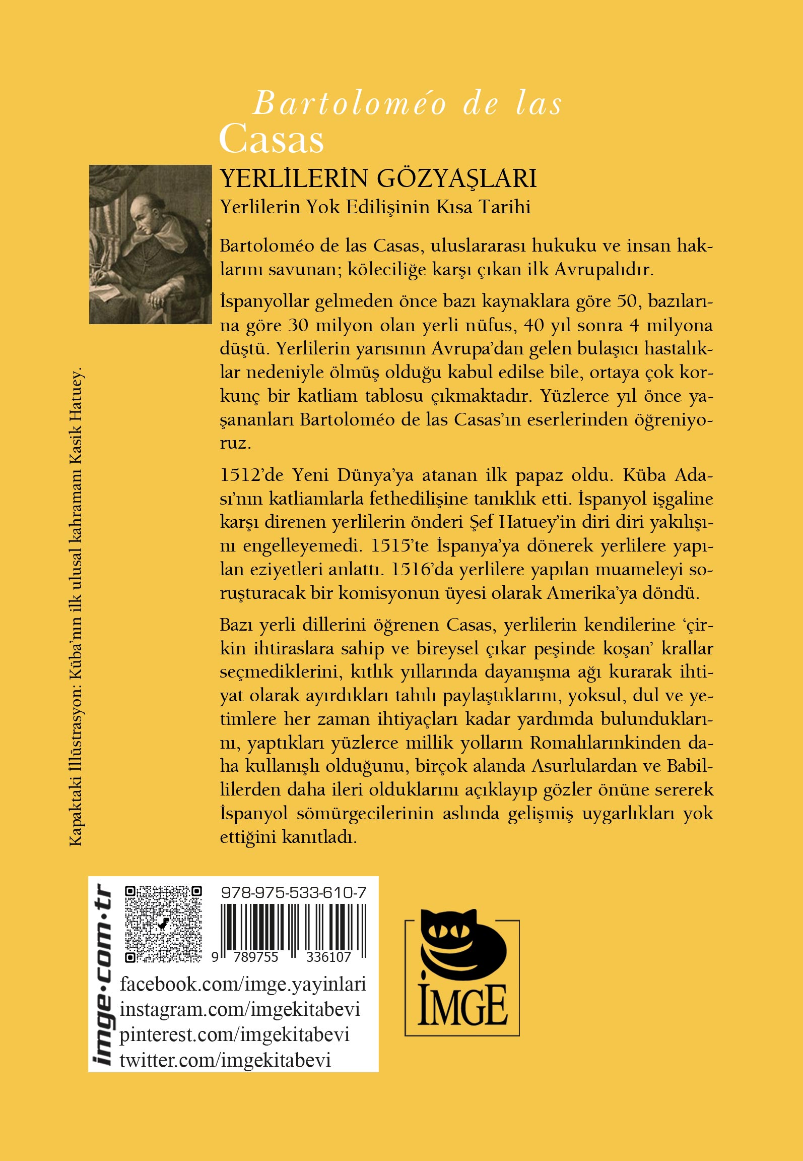 Özellikler: Boyut: 13,5 x 19,5 / İthal Kitap Kâğıdı / 142 sayfa / 6. Baskı, Haziran 2023 İlk baskı tarihi: Eylül 2009 Çevirmen: Oktay Etiman İspanyollar gelmeden önce Güney Amerika'da 30 milyon olan yerli nüfus 40 yıl içinde 4 milyona düşmüştü. Yüzlerce yıl önce yaşananları bugün Bartolomeo de las Casas'ın kitaplarından öğreniyoruz. Bu kitaplar yazarlarını da tanımlıyor: Tarihçi, Dominiken rahip, uluslararası hukuk ve insan haklarının ilk savunucusu ve köleciliğe karşı çıkan ilk Avrupalı. (...) Devrimci Kilise'den devrimci politikacıya, köylü ve yoksul birliklerinden özgürlük savaşçılarına kadar her hareketin içinde ve önünde Bartolomeo de las Casas vardır.