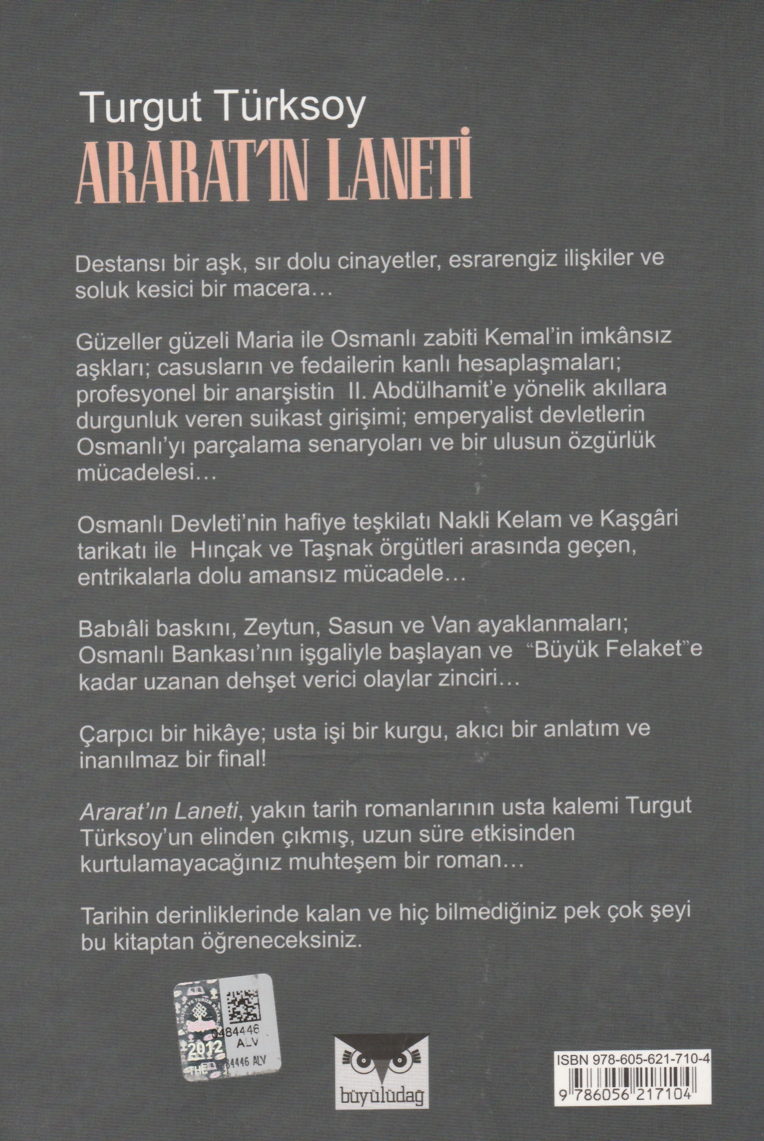 Ararat'ın Laneti, yakın tarih romanlarının usta kalemi Turgut Türksoy'un elinden çıkmış, uzun süre etkisinden kurtulamayacağınız muhteşem bir roman...