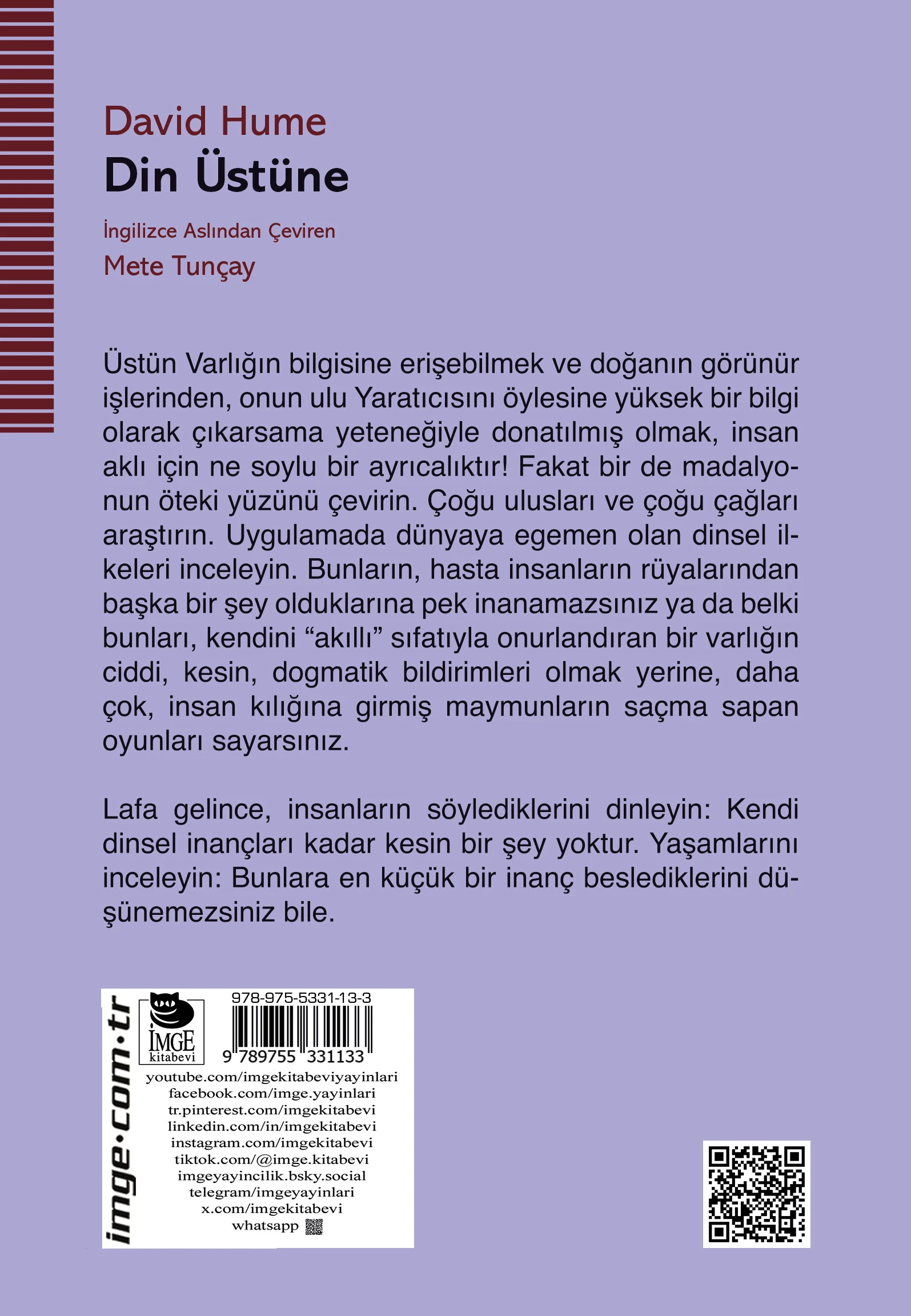 Özellikler: Boyut: 13,5 x 19,5 / İthal Kitap Kâğıdı / 266 sayfa / 8. Baskı, Aralık 2025 İmge'de ilk baskı tarihi (3) : Ağustos 1995 Çevirmen: Mete Tunçay Üstün Varlığın bilgisine erişebilmek ve doğanın görünür işlerinden, öylesine