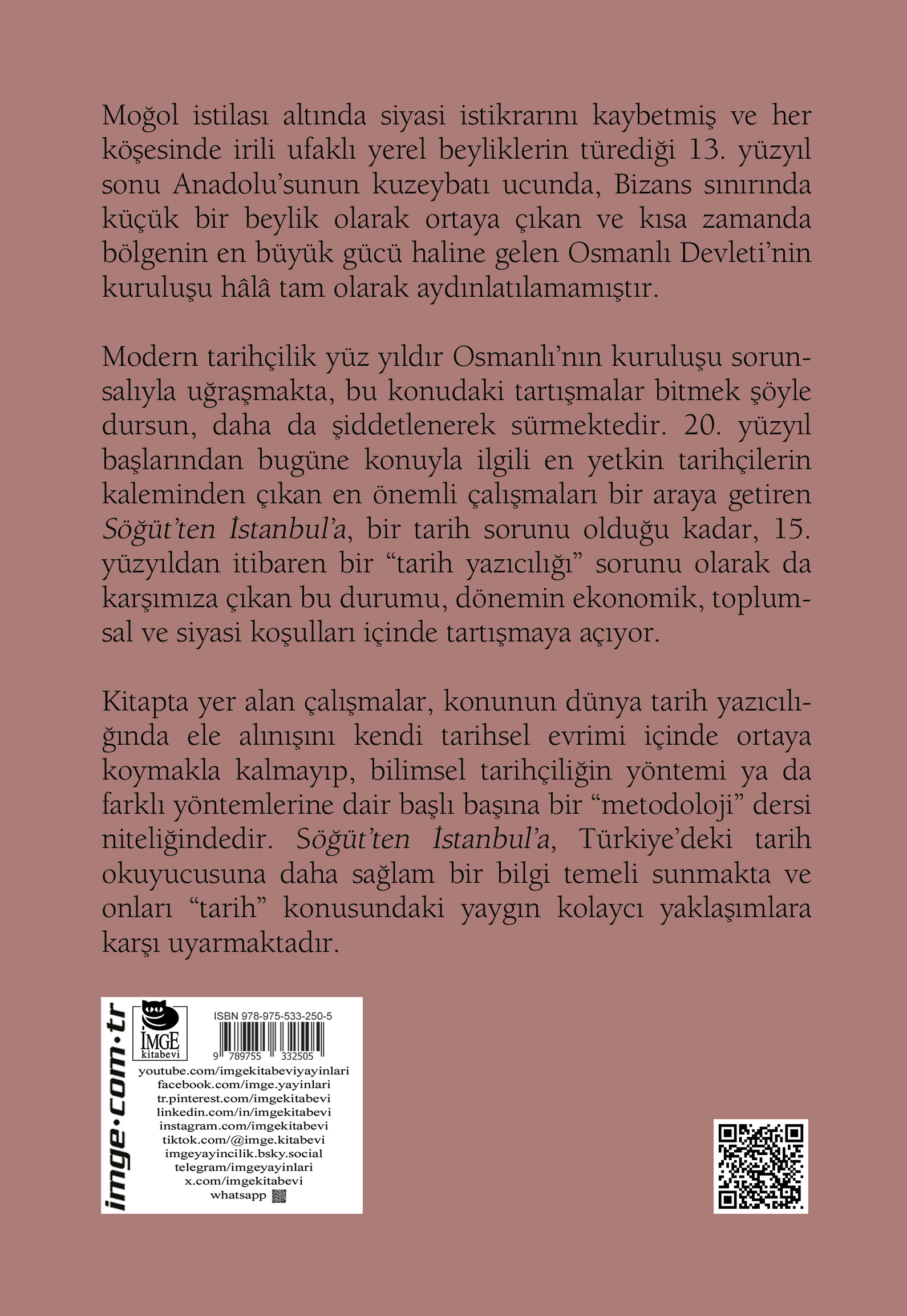 Kitapta yer alan çalışmalar, konunun dünya tarih yazıcılığında ele alınışını kendi tarihsel evrimi içinde ortaya koymakla kalmayıp, bilimsel tarihçiliğin yöntemi ya da farklı yöntemlerine dair başlı başına bir "metodoloji" dersi niteliğindedir. Söğüt´ten İstanbul´a, Türkiye´deki tarih okuyucusuna daha sağlam bir bilgi temeli sunmakta ve onları "tarih" konusundaki yaygın kolaycı yaklaşımlara karşı uyarmaktadır.