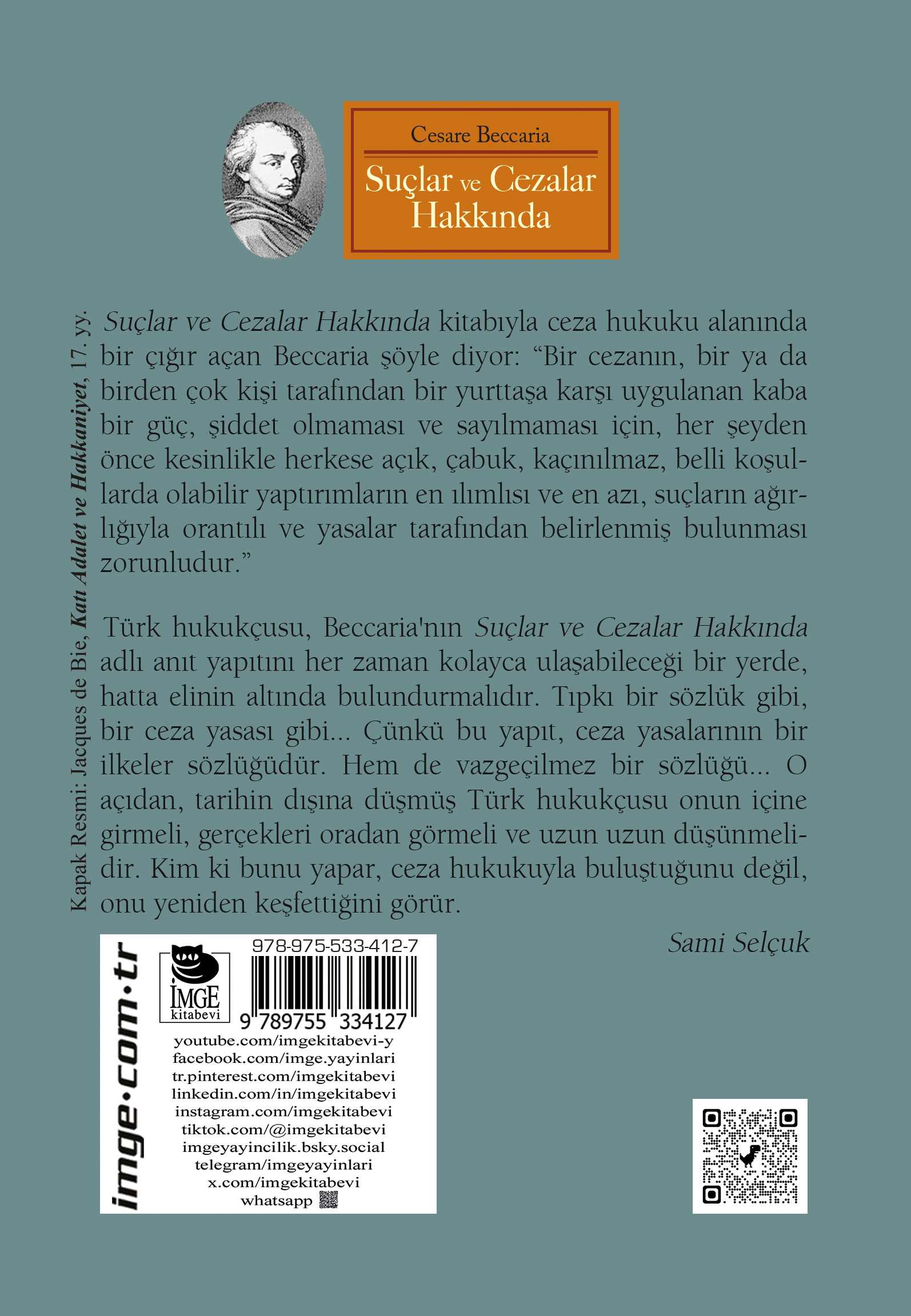Özellikler: Boyut: 13,5 x 19,5 / İthal Kitap Kağıdı / 222 sayfa / 14. Baskı, Nisan 2026 İlk baskı tarihi: Haziran 2004 Çevirmen: Sami Selçuk Suçlar ve Cezalar Hakkında kitabıyla ceza hukuku alanında bir çığır açan Beccaria şöyle diyor: “Bir cezanın, bir ya da birden çok kişi tarafından bir yurttaşa karşı uygulanan kaba bir güç, şiddet olmaması ve sa-yılmaması için, her şeyden önce kesinlikle herkese açık, çabuk, kaçınıl-maz, belli koşullarda olabilir yaptırımların en ılımlısı ve en azı, suçların ağırlığıyla orantılı ve yasalar tarafından belirlenmiş bulunması zorunlu-dur.” Türk hukukçusu, Beccaria'nın Suçlar ve Cezalar Hakkında adlı anıt ya-pıtını her zaman kolayca ulaşabileceği bir yerde, hatta elinin altında bu-lundurmalıdır. Tıpkı bir sözlük gibi, bir ceza yasası gibi... Çünkü bu ya-pıt, ceza yasalarının bir ilkeler sözlüğüdür. Hem de vazgeçilmez bir söz-lüğü... O açıdan, tarihin dışına düşmüş Türk hukukçusu onun içine gir-meli, gerçekleri oradan görmeli ve uzun uzun düşünmelidir. Kim ki bunu yapar, ceza hukukuyla buluştuğunu değil, onu yeniden keşfettiğini görür. Yargıtay Onursal Başkanı Sami Selçuk